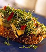 Das Brot in Scheiben schneiden. Misch die Zutaten und den Salat mit dem Rahm und Quark. Dann ein Salatblatt auf das Brot und die Mischung darauf geben. Man kann auch Thunfisch oder Schinken nehmen. Anstelle von Quark kann man auch Streichkäse verwenden.