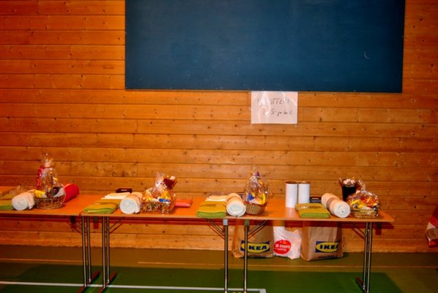 In der Halle waren die Tische so belagert, dass man eigentlich da nicht mehr ran kam. Ich machte erst einmal viele Fotos. Die Stuhlreihen waren gerade in den ersten Reihen mit Jacken und Taschen belegt. Denn nur so ist es möglich, wenn die Versteigerung um 12:00 Uhr beginnt, einen guten Platz zu haben. Suse und Kerstin hatten Plätze in der ersten Reihe. Die Jacke von Suse war unverkennbar.