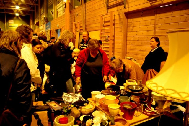 Suse ersteigerte versehentlich einen Karton mit Porzellan, was ihr aber nichts ausmachte, denn der Preis lag bei 200 Kronen. Die Sachen, die sie nicht gebrauchen konnte, hatte sie dann im Laufe des Tages wieder weiter verscherbelt. Zwischendurch ging Suse dann auch noch wieder an die Tische, wo es ihr dann doch nach einiger Zeit gelang, in den Mittelbereich zu kommen, der nur für die Verkäufer gedacht war. Hier wurde dann für bestimmte Sachen ein Sonderpreis ausgehandelt. (Geld und deutsche Kekse im Paket brachten die besten Ergebnisse.)