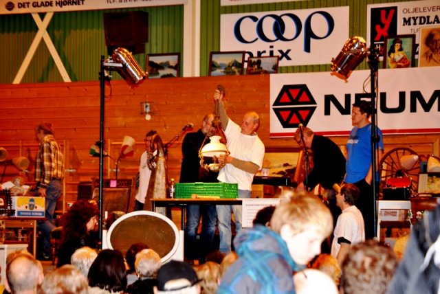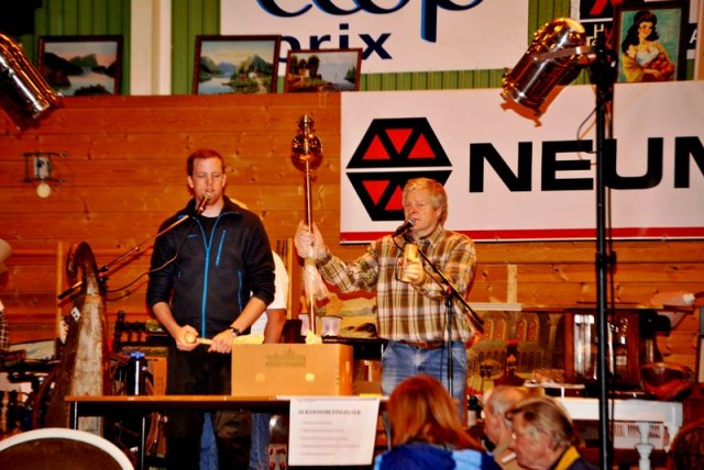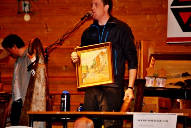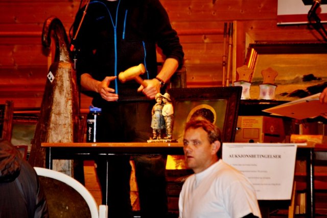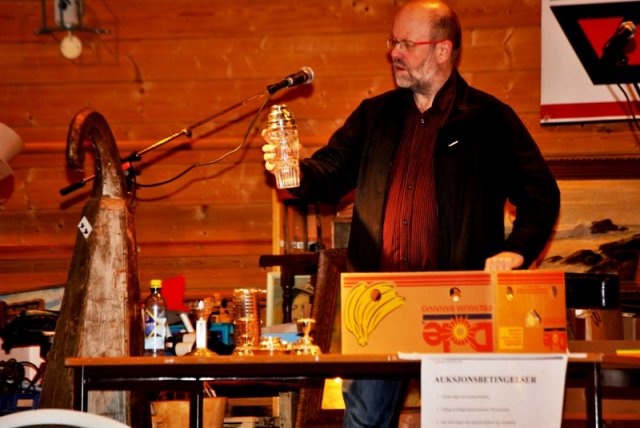 Kurz vor 10:00 Uhr begann ein reges Treiben auf der Bühne und die Sitzreihen füllten sich. Als die Versteigerung begann, waren alle Sitzplätze gefüllt und man wartete auf das, was da kommen sollte. Alle wurden erst einmal begrüßt und als Erstes wurde eine maritime Lampe versteigert. Es ging in Hunderterschritten voran und hörte bei 2.400 Kronen auf. Der neue Besitzer stand auf, bezahlte vorn an der Bühne und nahm die Lampe freudestrahlend an. Für das Teil hätte ich maximal 20 Kronen bezahlt. Ich musste im Laufe der Versteigerung feststellen, dass die Norweger eine völlig andere Wertigkeit der Dinge haben. Was bei uns in Deutschland richtig teuer ist, ging dort für ein Taschengeld weg. Wo wir sagen würden: „Schmeiß weg!“, wurde gesteigert, dass sich die Geldbörse biegt.