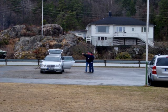 Nach dem Frühstück teilten sich die Gruppen auf. Drei Gruppen à 4 Personen gingen in die Boote, einige wollten vom Ufer aus angeln. Der Rest stieg in zwei Autos ein. Dieser Gruppe zeigte ich nun Südnorwegen. Es ging zuerst zum Wasserfall nach Kvås.