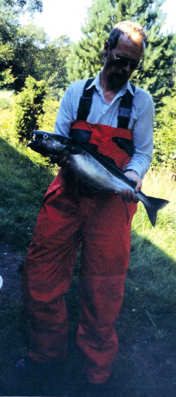 Wir also weiter Richtung Fjordausgang. In dem schmalen „Kanal“ kamen wir gut weiter, denn von unten hatten wir eine nette Strömung. Dann kam das Leuchtfeuer und mit ihm die erste Welle vom Meer. Das Ding war fast 2 m hoch. Vollgas und den Berg hoch. Auf dem Wellenkamm sofort die Wende und in einem Schwung runter und in den Fjord zurück. Wir bekamen noch den Rest der 2. Welle ans Heck, aber da war die Welle schon entschärft. Zurück zum Bootshaus und erst mal fertig mit Angeln.