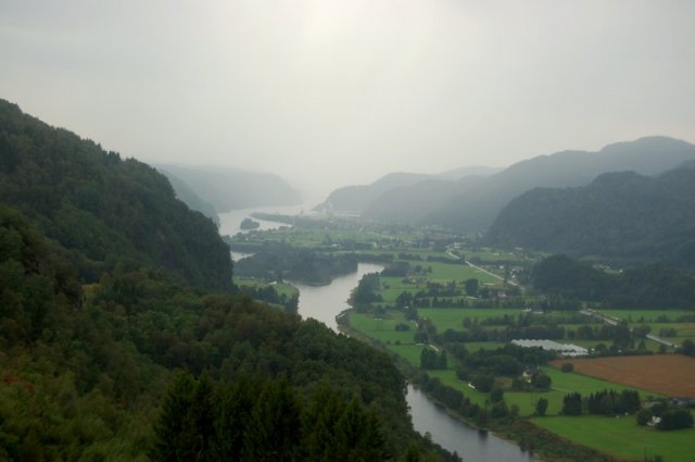 An der alten E39 (jetzt 461) musste man mit dem Auto einen hohen Berg erklimmen, um auf die andere Seite der Kvina zu kommen. Auf dem Berg war eine Tankstelle und ein kleines Hotel. Jetzt wurde das Hotel völlig neu gebaut, denn es steht nun sehr ruhig auf dem Berg. Der Straßenverkehr der E39 geht nicht mehr am Hotel vorbei. Die Aussicht auf das Tal ist einmalig. Oft kommen auch jetzt noch Touristenbusse hierhin.
