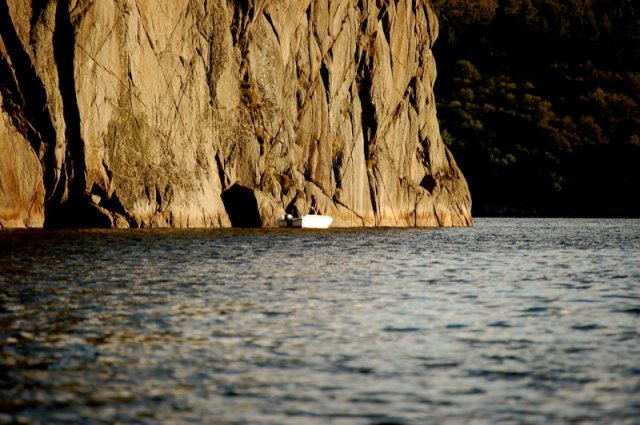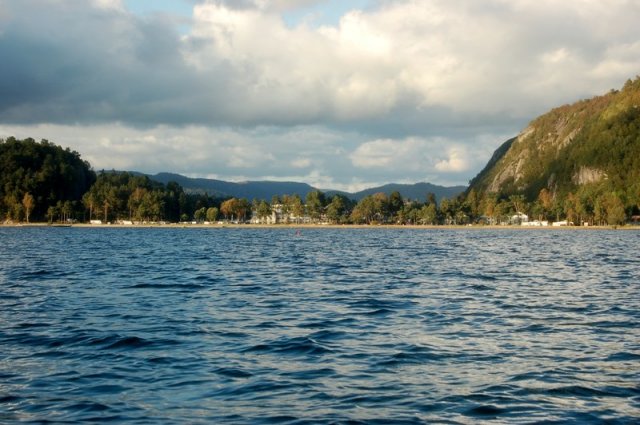 Dies ist ein Fjord, der alles hat, ohne dass es sich gegenseitig stört. Dieser Fjord ist bis zu 250 Meter tief, an der breitesten Stelle eine Seemeile breit und 6 Seemeilen lang. Er wird auch von der Berufsschifffahrt genutzt. Kurz hinter der Mündung wurde in den letzten Jahren eine Kaianlage gebaut, von der wir zuerst vermutet hatten, dass es demnächst mit der Ruhe vorbei sei. Hier wird Gestein abgebaut. Glücklicherweise habe ich von dort noch keinen störenden Geräuschpegel gehört. Auch umweltmäßig wird dort viel gemacht. Im hinteren Teil des Fjords, bei Agnefest werden Schiffe oder gelegentlich auch einmal eine Bohrinsel ausgerüstet. Auch hier findet kaum eine Geräuschbelästigung statt.